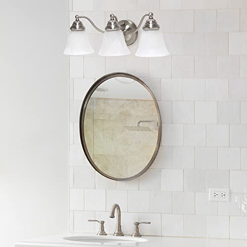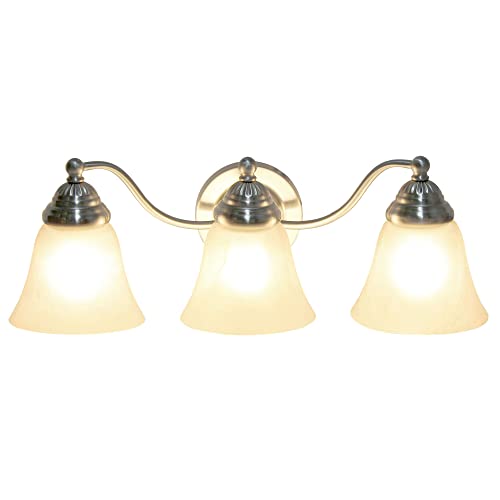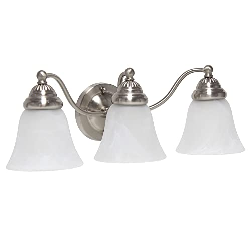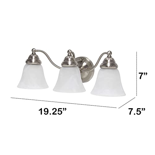 Lalia Home Essentix Traditional Three Light Curved Metal and Alabaster White Glass Shade Vanity Uplight Downlight Wall Mounted Fixture