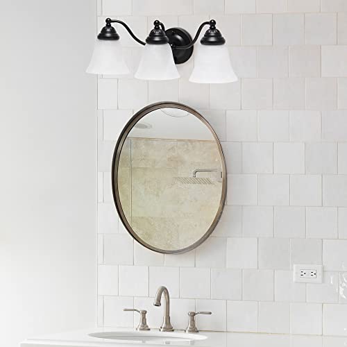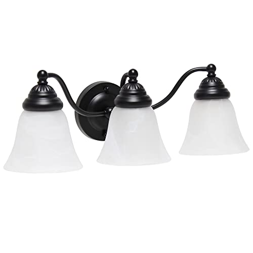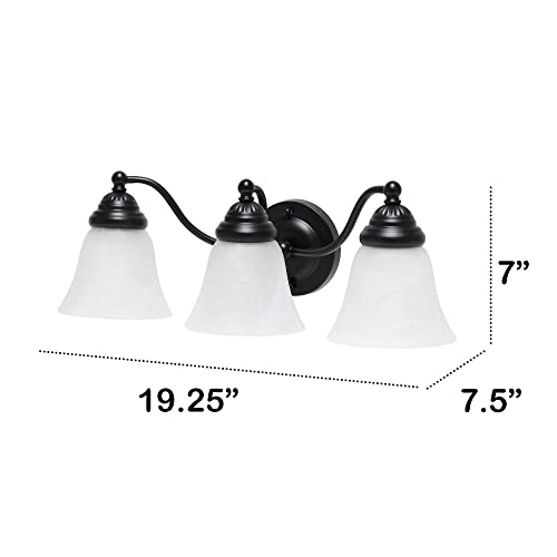 Lalia Home Essentix Traditional Three Light Curved Metal and Alabaster White Glass Shade Vanity Uplight Downlight Wall Mounted Fixture