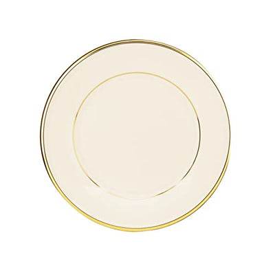 The salad plate is crafted of ivory china, rimmed in gleaming gold. This plate also complements most Lenox gold-accented ivory china Lenox patterns.