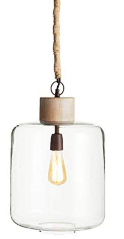 A simple composition in glass and wood, the Jerome pendant is scaled to impress. Over an island, in an entry or foyer, this pendant is simply a beautiful accent.
