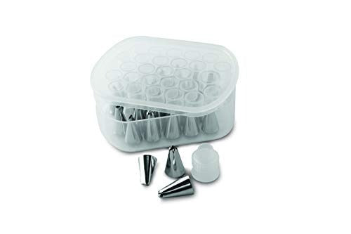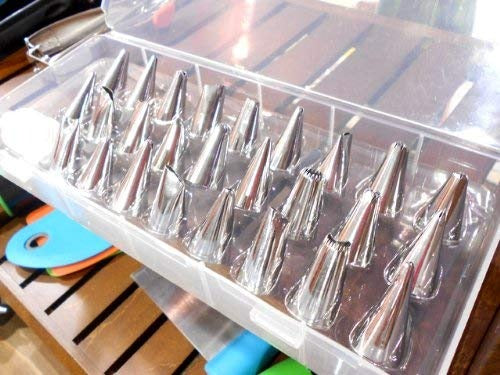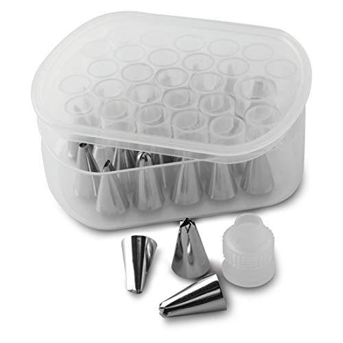 - Includes 26 stainless steel shaped tips and 1 coupler that fits standard icing bags