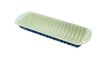 Our line of professional heavyweight bakeware is constructed of aluminized steel, which disperses heat evenly for terrific results, and will not rust or warp in the oven. The collection includes pieces for all baking needs and features premium non-stick interiors with bright, colorful exteriors for oven-to-table serving. Each piece is covered by a 10-year warranty. Bake quick breads and traditional Scandinavian almond cakes in this classic ribbed pan. 4-cup capacity.