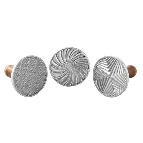 Cookies and pies, Oh My! these special purpose baking purpose baking products will amaze and delight. Create a variety of shapes and forms to set the scene for any season. Friends and family Marvel at the masterpieces you create! press beautiful geometric patterns into your favorite cookies with our Heirloom quality Stamps. Includes 3 patterns with visually appealing Symmetry. Lifetime warranty.