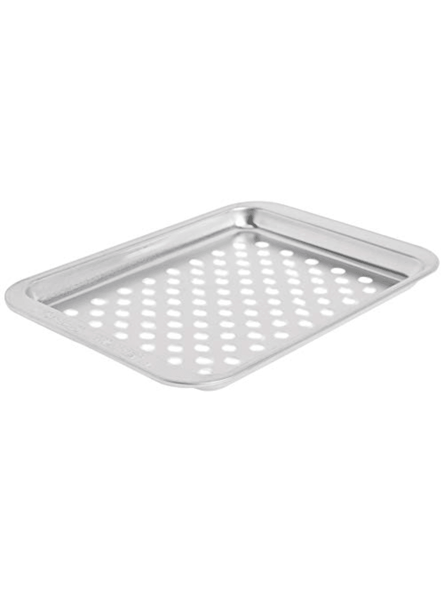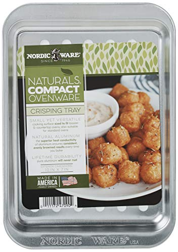 Made to fit counter top and toaster ovens as well as conventional ovens, these 7 x 10 inch baking pieces are perfect for modest portions. Newly available in popular natural aluminum 2017. Ideal for empty nesters, dorm and apartment dwellers, or single servings. 5-Year warranty a perforated version of our baking sheet that promotes crisping and browning. A nice pan for heating pizza, appetizers and frozen foods.