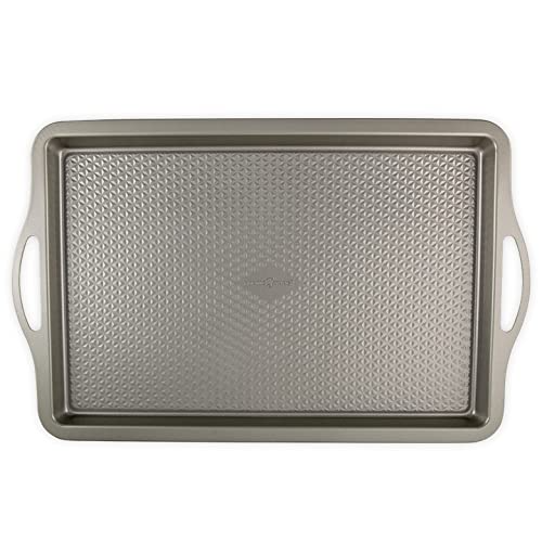 - Easy-to-grab open handle design gives you a solid grasp as you handle the pan into and out of the oven