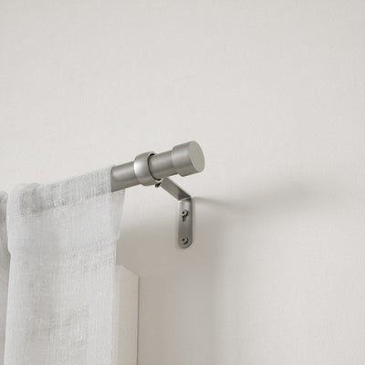Each Cappa curtain rod from Umbra is made of high-quality metal and individually checked for quality assurance. Sturdy and with a versatile design, Cappa supports a variety of window fashions including light to medium weight curtains with a max weight of 22lbs. (10kg). Plus, everything you need to get it set up fast comes in the box including matching metal finials, adjustable wall-mounted curtain rod brackets, screws, drywall anchors and easy-to-follow installation instructions. This adjustable curtain rod works with a variety of decor styles and can be used with grommet, back-tab, rod pocket and tab-top curtains. Single rod brackets sit 4” (10 cm) from the wall , Double rod brackets sit 6” (15 cm) from the wall.