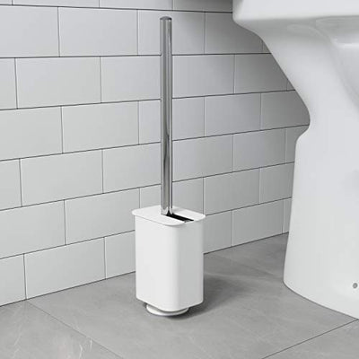 Umbra Flex Sure-Lock Toilet Brush makes cleaning your toilet a less gruesome chore. With rubberized bristles that are both soft and durable, this toilet brush prevents odor-causing bacteria, mold or mildew for a sanitary and long-lasting brush. Its lid stays open when the brush is removed and automatically closes when putting back in place, all without having to touch anything but the handle. Flex Toilet Brush’s canister neatly stores the brush when not in use and can be secured to the floor or to any smooth surface. Measures 13 x 5 x 3.5 inches (33 x 13 x 9 cm). ⓘ For best results, we recommend tightening the SURE LOCK knob once a month.