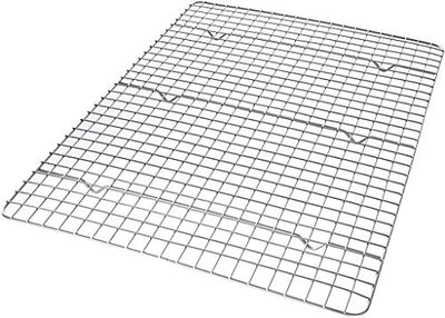 The USA Pan nonstick bakeable half sheet cooling rack is perfect for cooling freshly baked cookies, cakes, and scones straight from the oven. The USA Pan non-stick half Sheet cooling rack fits seamlessly inside the USA Pan Half Sheet Pan and provides home bakers with an easy way to add the perfect glaze or finish to your homemade baked goods. This cooling rack features a steel cross wire design and raised feet, which elevates cookies, breads, cakes, and scones into a raised position that serves to promote Uniform cooling among your baked items. The nonstick coating on the rack surface also means that your cookies will be left with crispy bottoms that remain intact. No more ruined cookies that get stuck as they cool! The cooling rack is oven safe up to 450 degrees Fahrenheit. This rack is not dishwasher safe and it is recommended that you clean the rack using a soft sponge or kitchen brush to remove food particles. USA Pan professional grade bakeware helps everyday home bakers produce professional grade baked goods. USA Pan bakeware is long-lasting, durable, reliable, and comes with a limited lifetime . USA Pan is a Bundy family owned company, based in the greater Pittsburgh, Pennsylvania area that has been producing high performance bakeware for over 50 years.
