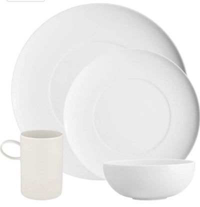 Domo White is a contemporary dinner set inspired by modern, minimalist design trends and international architecture. The subtle spherical and rounded shapes come together with well pronounced details to create contrast. A versatile and elegant dinner set, ideal for your table. Includes: 1 dinner plate, 1 dessert plate, 1 cereal bowl, and 1 mug